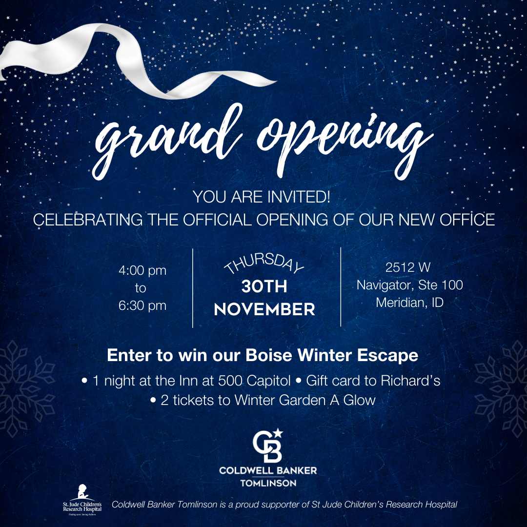 We're thrilled to announce the grand opening of our new office space! Join us on November 30th from 4:00-6:30 pm at 2512 W Navigator Suite 100 in Meridian for a celebration filled with food, drinks, and a chance to win our exciting Boise Winter Escape.