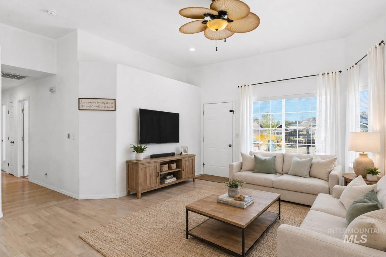 Live Local. Live Easy. Live Kuna. Enjoy single-level living in the heart of Kuna, where comfort, convenience, and community come together. This 3-bedroom, 1.5 bath home offers an easy, functional layout just minutes from everything Kuna has to offer. Inside, youll find a bright, welcoming space with a natural flow from the living area to the dining room perfect for everyday living or casual gatherings. Recent updates include new flooring, newer appliances, fresh exterior paint, and a brand new roof, giving peace of mind from day one. The kitchen offers an open layout with room to make it your own. Step outside to a covered patio and fully fenced yard, ideal for relaxing evenings, pets, or weekend BBQs. With over 50 feet of RV parking, theres plenty of space for trailers, toys, or extra vehicles. No HOA and no restrictions allow for true flexibility. Located near local favorites like Enriques, Rice Works, and the Kuna Greenbelt, youll love the convenience to dining, outdoor recreation, and community events. Ideal for first-time buyers, or downsizers. Some rooms are virtually staged to show what you can do with this space.
